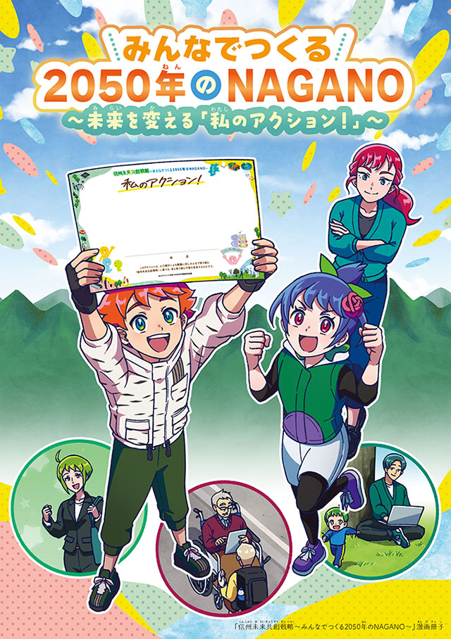 「信州未来共創戦略~みんなでつくる2050年のNAGANO~」を、もっとわかりやすく子どもたちに伝えたい——そんな思いから制作した漫画冊子「みんなでつくる2050年のNAGANO~未来を変える「私のアクション!」~」
